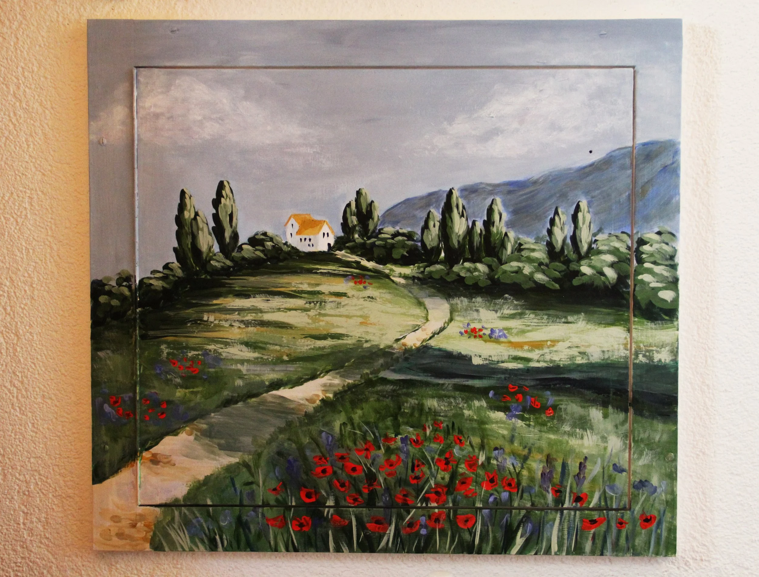 Je travaille principalement à l’aquarelle, la gouache ou à l’acrylique, mais j’aime varier les techniques sur une même pièce. Vous y trouverez donc des finitions aux néocolors et aux crayons de couleur pour un rendu coloré et vivant. La technique varie également en fonction du support utilisé (papier, bois, toile de lin, miroir…).